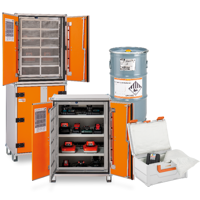 - Spezielle Transportbehälter mit Brandschutzfunktion